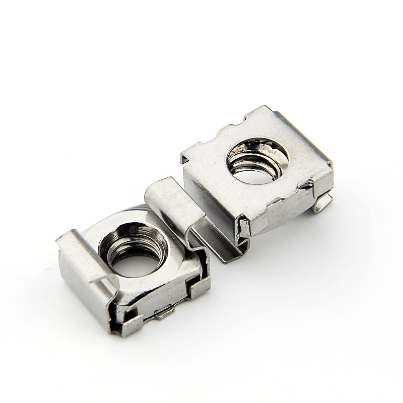 卡式螺母也叫方孔式螺母,籠式螺母,機(jī)柜螺母,叫法不一樣,意思都是一樣??ㄊ铰菽甘怯梢粋€類似于彈簧性質(zhì)的卡槽和一個四方螺母組合而成。根據(jù)材質(zhì)不同分為CN全碳鋼卡式螺母、CNS半不銹鋼卡式螺母及CNSS全不銹鋼卡式螺母三種 。 碳鋼部分的表面處理有: 藍(lán)白鋅、彩鋅和亮鎳供客戶選擇。 具體規(guī)格尺寸根據(jù)所用板材厚度選所需擇規(guī)格尺寸,對應(yīng)板材沖孔尺寸 。