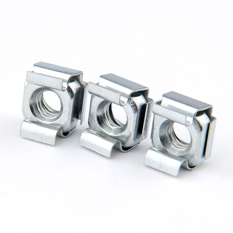 卡式螺母也叫方孔式螺母,籠式螺母,機柜螺母,叫法不一樣,意思都是一樣??ㄊ铰菽甘怯梢粋€類似于彈簧性質(zhì)的卡槽和一個四方螺母組合而成。根據(jù)材質(zhì)不同分為CN全碳鋼卡式螺母、CNS半不銹鋼卡式螺母及CNSS全不銹鋼卡式螺母三種 。 碳鋼部分的表面處理有: 藍白鋅、彩鋅和亮鎳供客戶選擇。 具體規(guī)格尺寸根據(jù)所用板材厚度選所需擇規(guī)格尺寸,對應板材沖孔尺寸 。