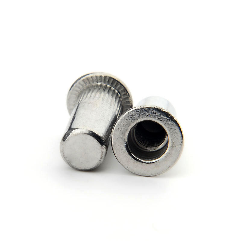 平頭盲孔拉鉚螺母,工業(yè)領(lǐng)域最早也是最常用的拉鉚螺母,在某些不易加工六角孔處應(yīng)用,帽檐下壓花和柱體豎條紋提高了鉚螺母的防漏防轉(zhuǎn)效果,拉鉚螺母常被人們叫做鉚螺母或者拉帽等,主要應(yīng)用在金屬制造等工業(yè)領(lǐng)域,充當(dāng)?shù)闹饕饔脼榫o固金屬的緊固作用。目前產(chǎn)品銷售常用的有不銹鋼拉鉚螺母和鐵鍍彩鋅拉鉚螺母。應(yīng)用領(lǐng)域:家具制造、建材裝飾、制冷設(shè)備、汽車制造等等領(lǐng)域。