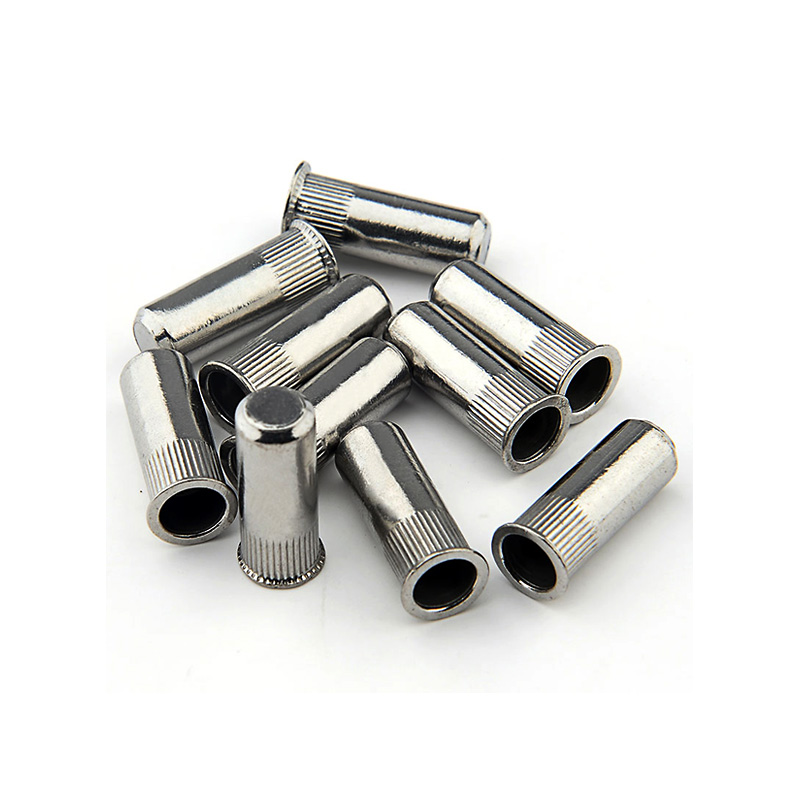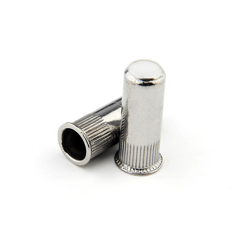 小頭豎紋盲端拉鉚螺母,工業(yè)領(lǐng)域最早也是最常用的拉鉚螺母,在某些不易加工六角孔處應(yīng)用,帽檐下壓花和柱體豎條紋提高了鉚螺母的防漏防轉(zhuǎn)效果,拉鉚螺母常被人們叫做鉚螺母或者拉帽等,主要應(yīng)用在金屬制造等工業(yè)領(lǐng)域,充當(dāng)?shù)闹饕饔脼榫o固金屬的緊固作用。目前產(chǎn)品銷售常用的有不銹鋼拉鉚螺母和鐵鍍彩鋅拉鉚螺母。應(yīng)用領(lǐng)域:家具制造、建材裝飾、制冷設(shè)備、汽車制造等等領(lǐng)域。