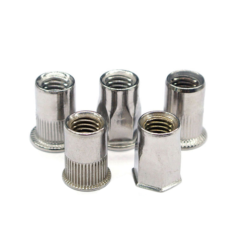 六角拉鉚螺母的安裝方式與普通鉚螺母的安裝方式完全一樣,只是板孔需要沖成相適配的六角形。