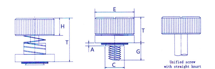 彈簧螺釘由三部分組成:彈簧+頭部帶滾花頭的螺釘+帶花齒的壓鉚件。在實際使用當(dāng)中,頭部帶滾花的的螺釘甚至可以當(dāng)作手擰螺釘(這種型式的螺釘歸納為一種專用的螺釘系列)單獨使用。與其它面板彈簧螺釘一樣,通過壓鉚或沖壓的方式固定于薄板,適應(yīng)板厚1.0以上,對應(yīng)更小或較厚板厚的規(guī)格需訂制。