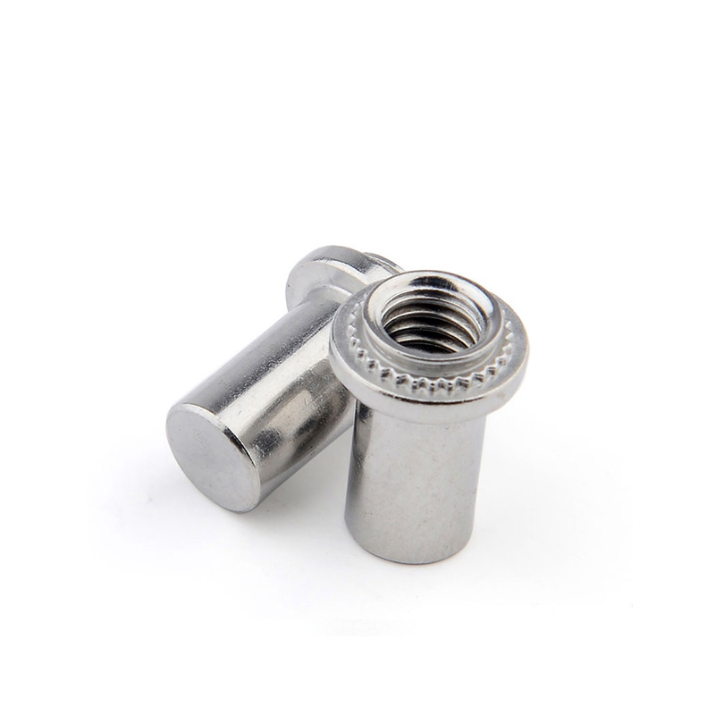 防水螺母柱材質(zhì)有碳鋼、不銹鋼、不銹鐵三種。盲端壓鉚螺母柱型號(hào)B、BS、BS4,頭型為圓形頭。