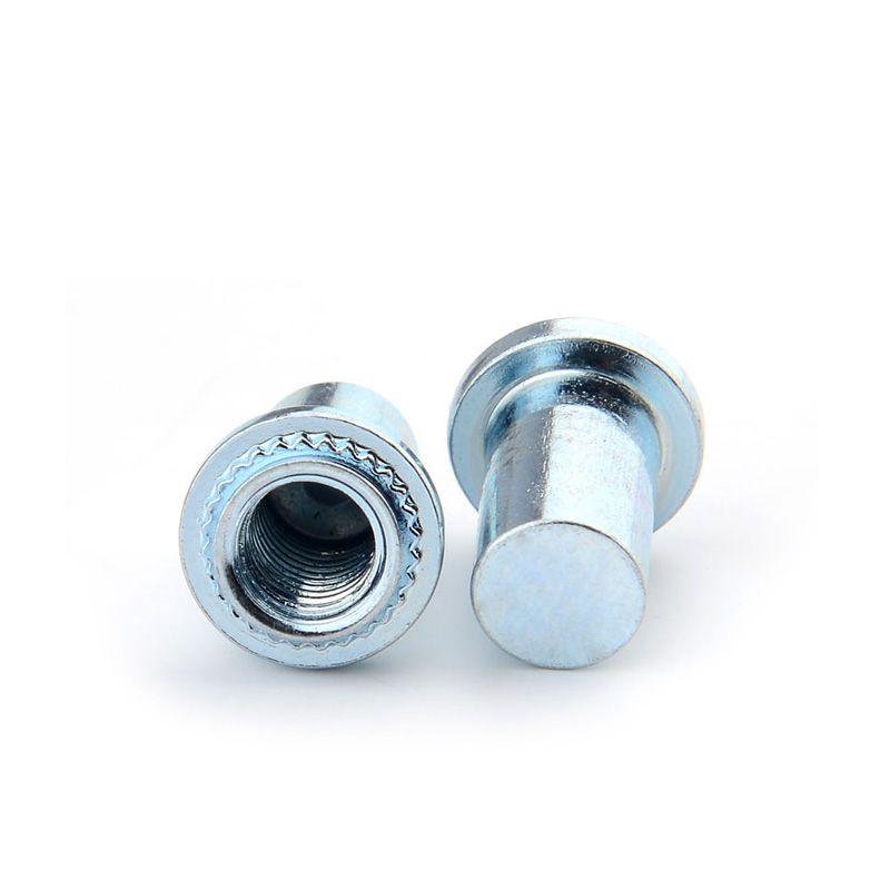 防水螺母柱材質(zhì)有碳鋼、不銹鋼、不銹鐵三種。盲端壓鉚螺母柱型號(hào)B、BS、BS4,頭型為圓形頭。